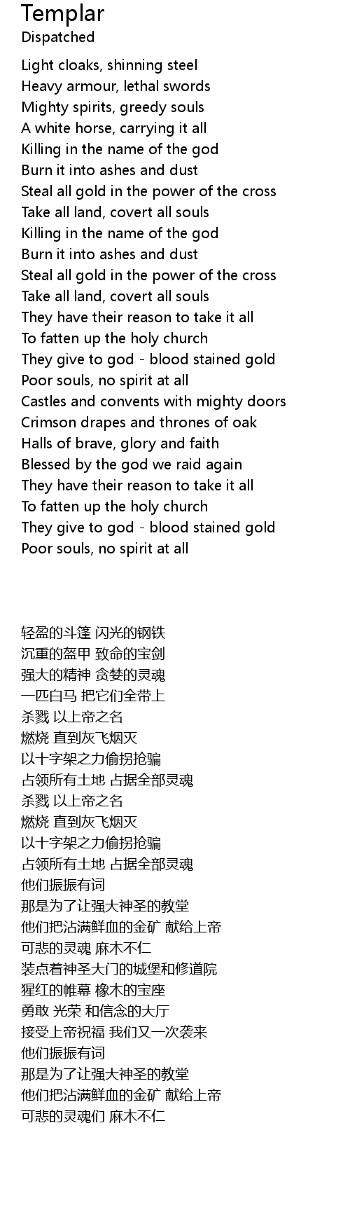 They give to god - blood stained gold |