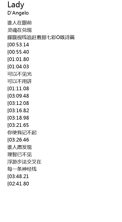 | [03:41.06][03:21.65][02:22.86][01:29.37][00:31.38] | 沟出的你 你使我记不起 |