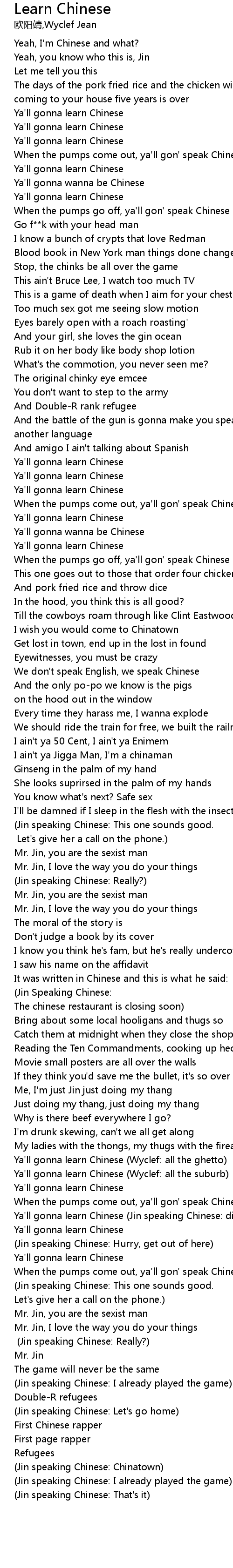 [03:16.430] Ya'll gonna learn Chinese (Wyclef: all the suburb)