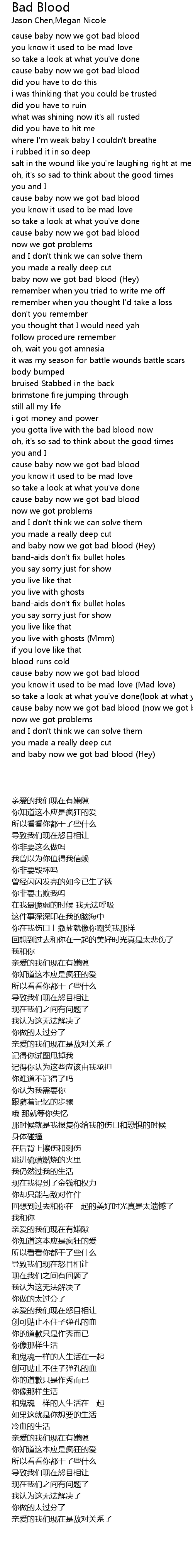 cause baby now we got bad blood (now we got bad blood) |