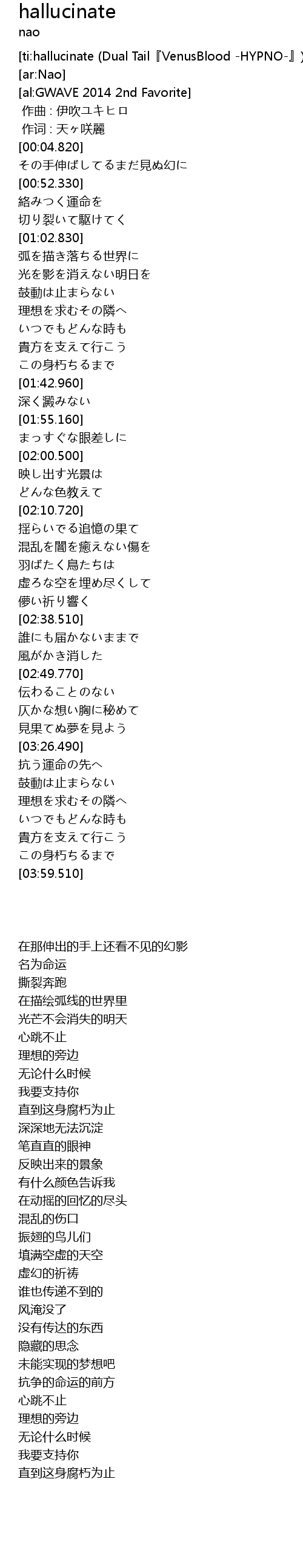 | [ti:hallucinate (Dual Tail『VenusBlood -HYPNO-』)] | |