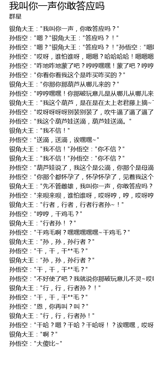 | [01:38.00] | 孙悟空:"干,干,干**毛?" |