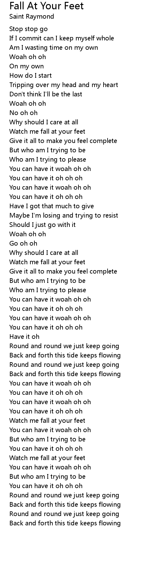 Watch me fall at your feet |