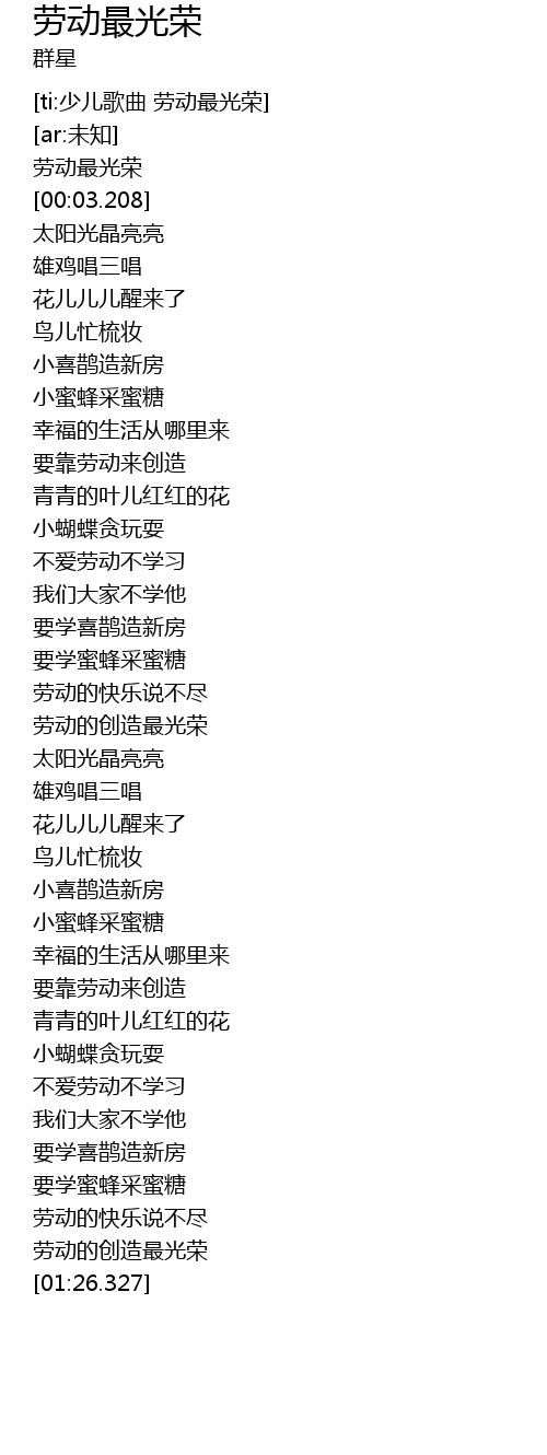 | [01:23.139] | 劳动的创造最光荣 |