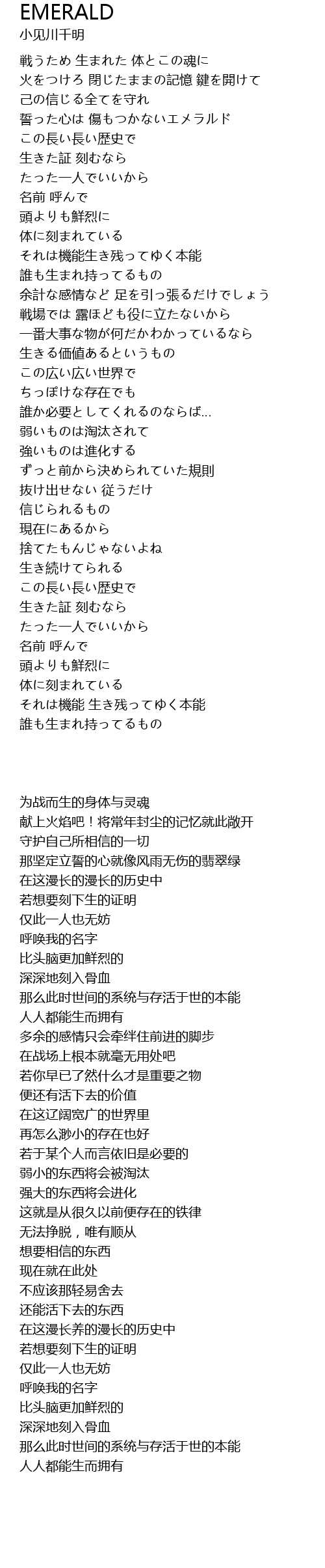 | [00:15.26] | 戦うため 生まれた 体とこの魂に |