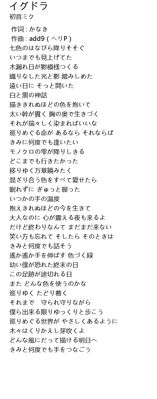 | [00:01.000] | 作曲 : add9(ヘリP) |
