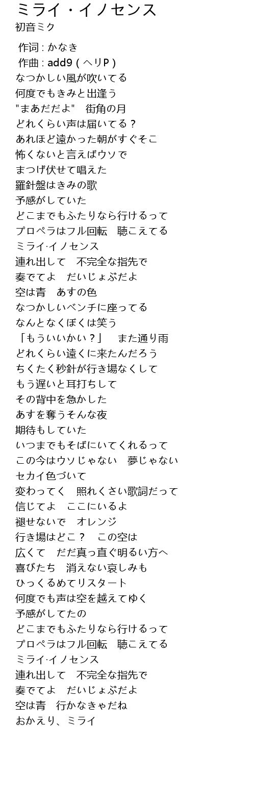 | [00:01.000] | 作曲 : add9(ヘリP) |