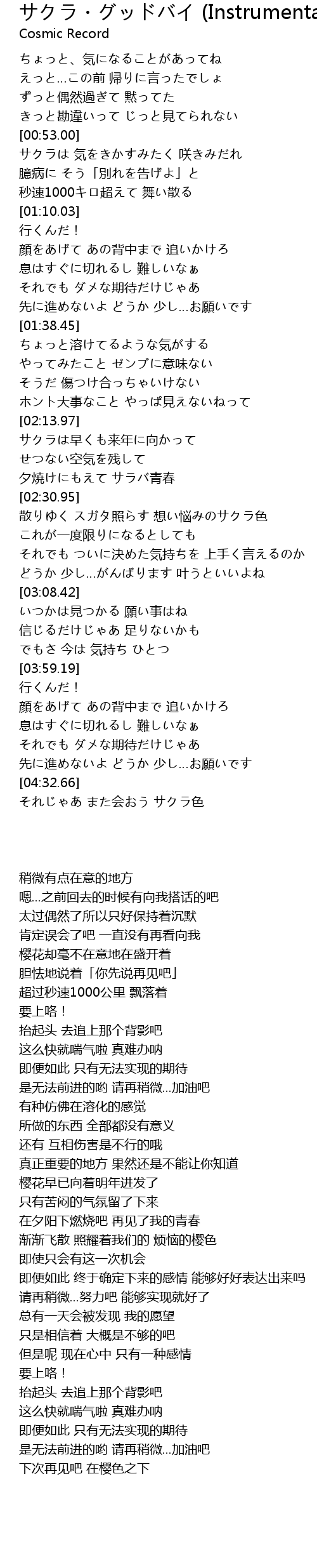 | [01:04.94] | 秒速1000キロ超えて 舞い散る |