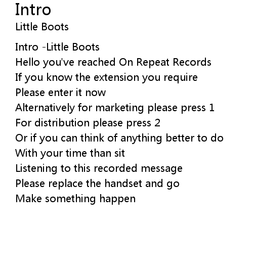 | [00:16.167] | Hello you've reached On Repeat Records |