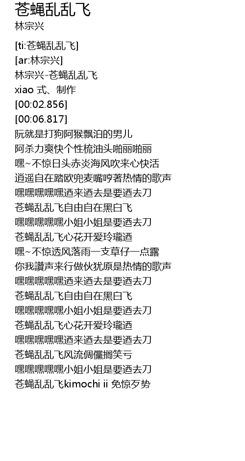 | [00:00.978] | 林宗兴-苍蝇乱乱飞 |