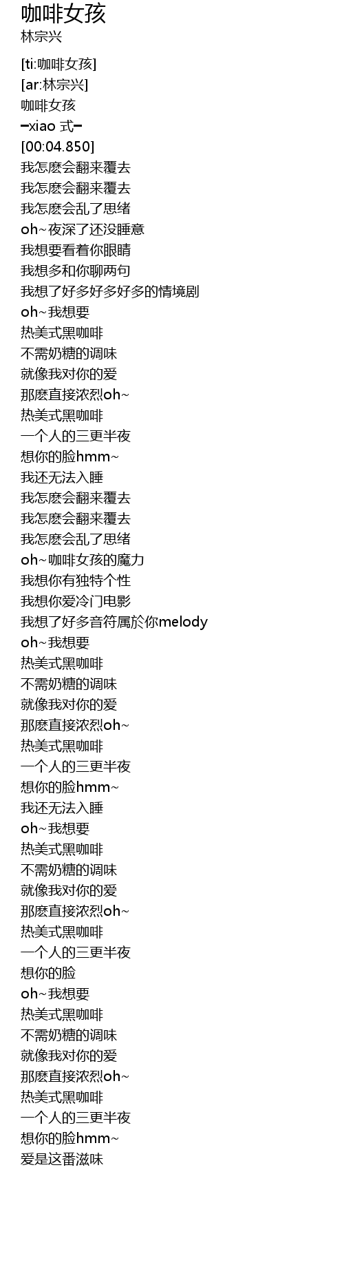 | [02:00.379] | oh~咖啡女孩的魔力 |