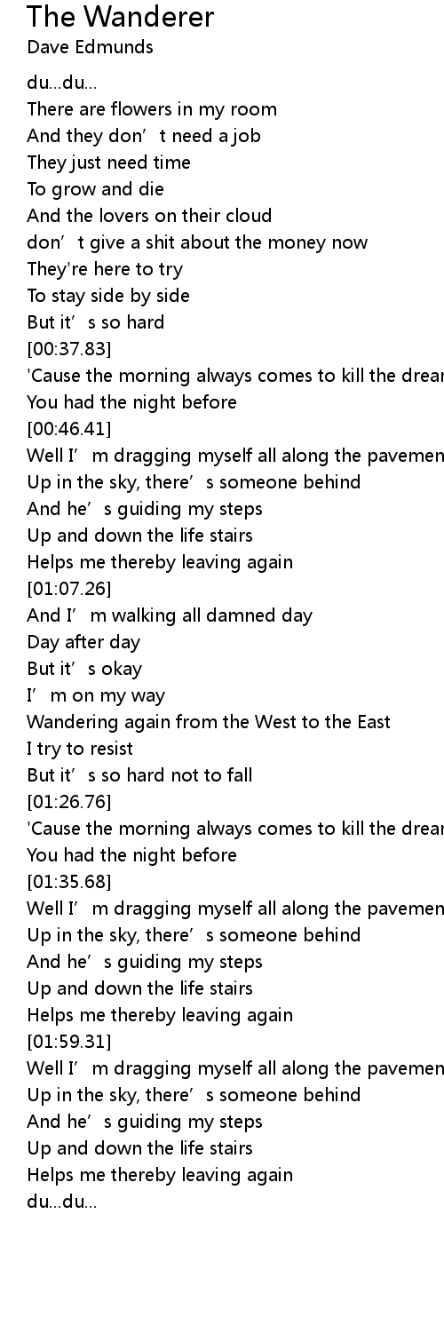 | [01:36.05] | Well I' m dragging myself all along the pavement |
