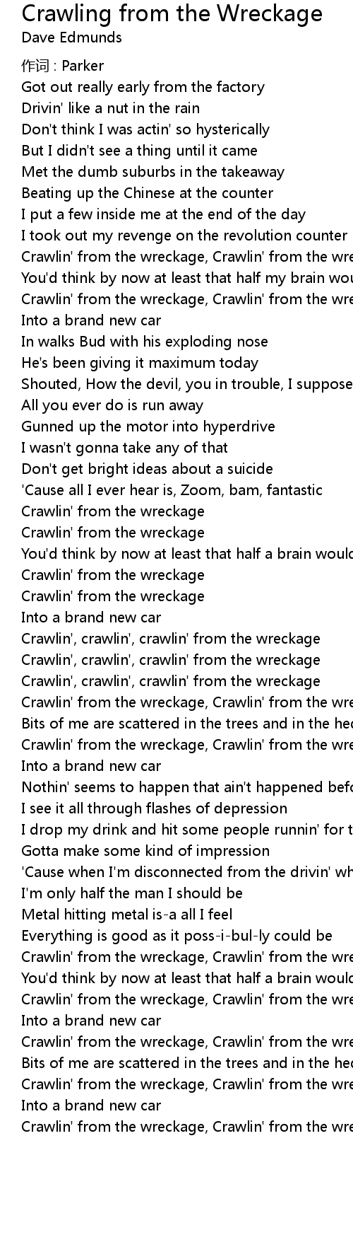 | Crawlin' from the wreckage, Crawlin' from the wreckage. |