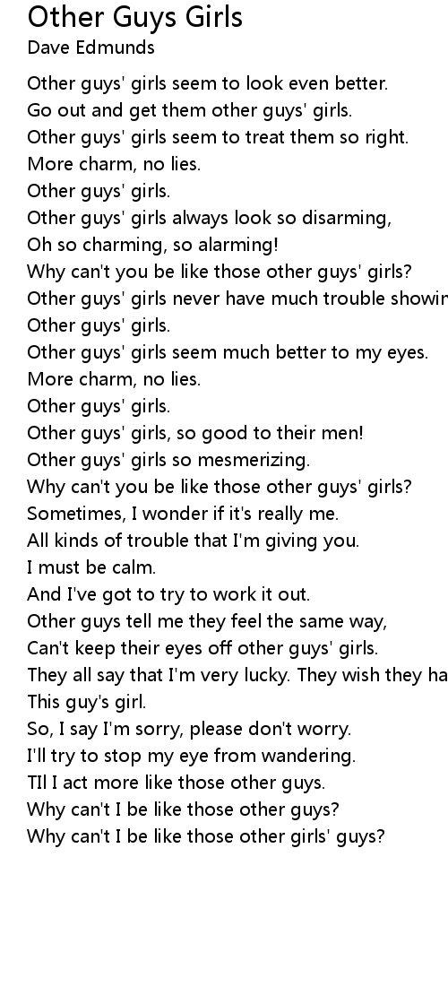 Other guys' girls always look so disarming, |