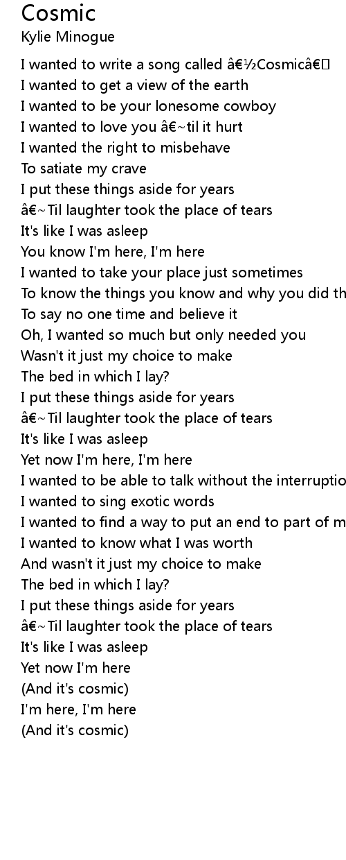 | I wanted to write a song called Cosmic | |
