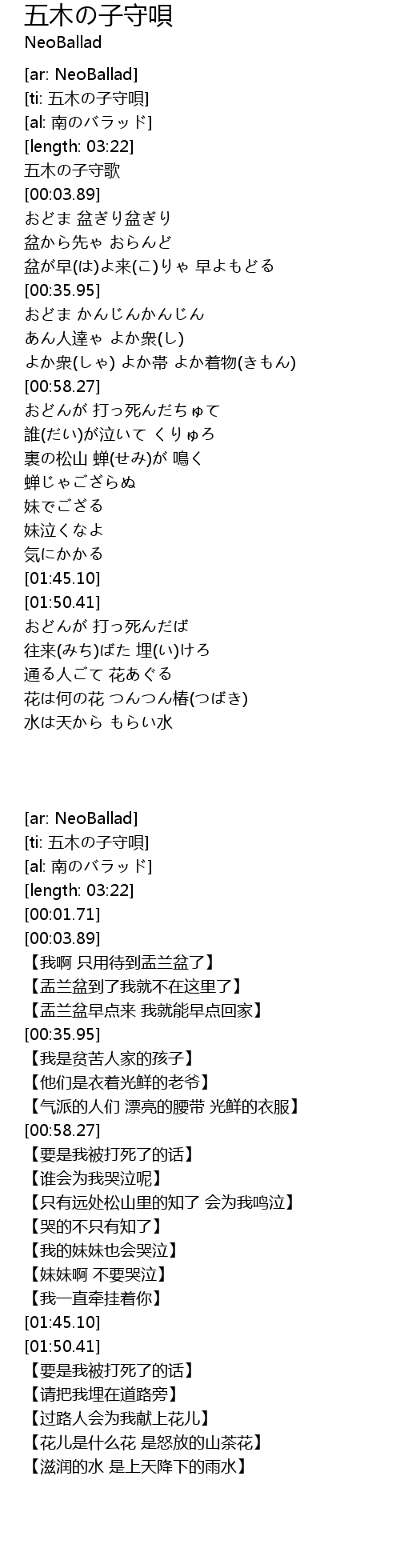 [ti: 五木の子守唄] |