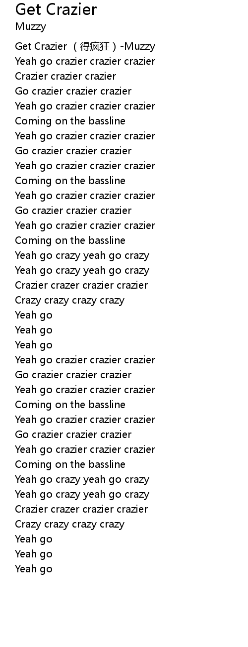 | [00:43.732] | Yeah go crazier crazier crazier |