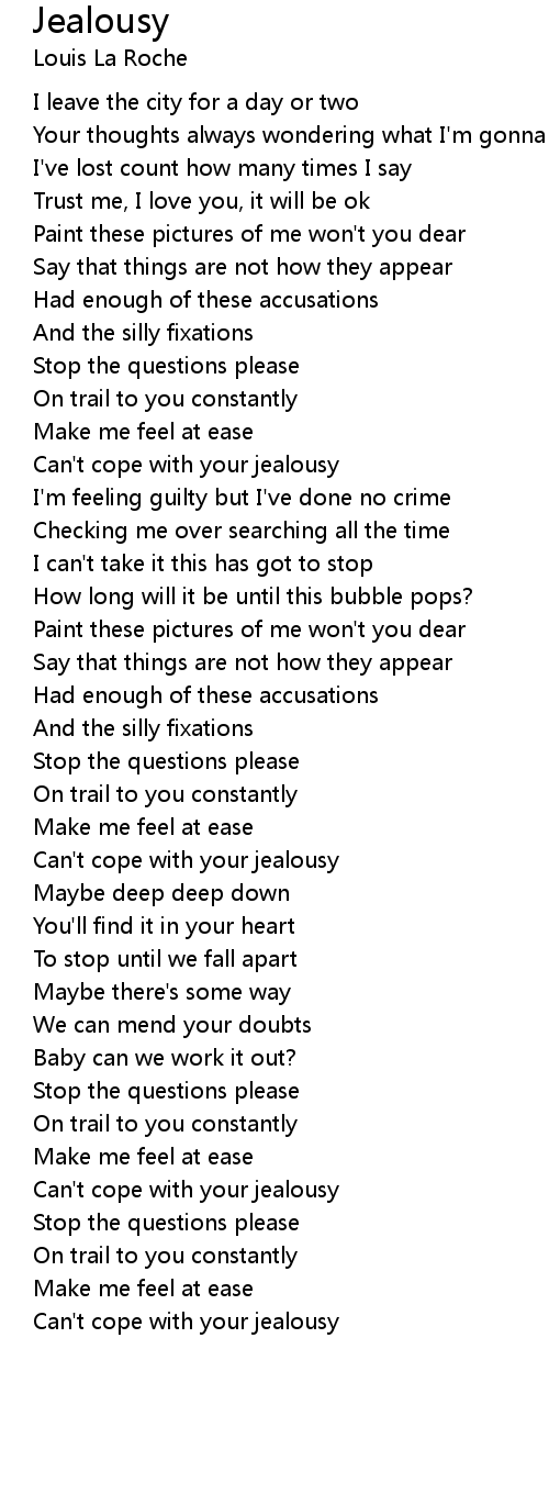 Can't cope with your jealousy |
