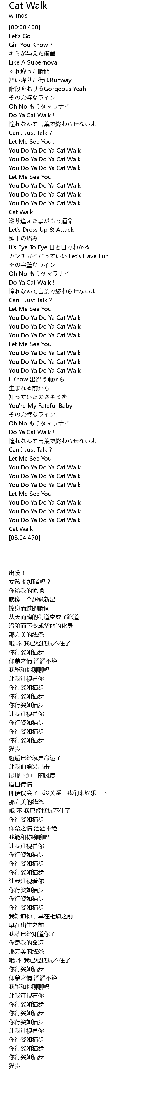 | [02:03.120] | You Do Ya Do Ya Cat Walk |