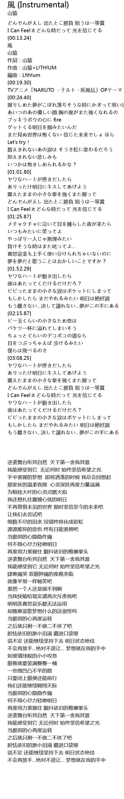 | [00:20.40] | TVアニメ「NARUTO -ナルト-疾風伝」OPテーマ |