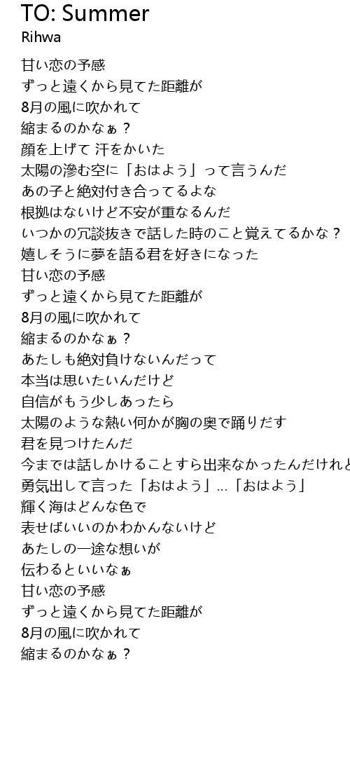 | Song | TO: Summer |