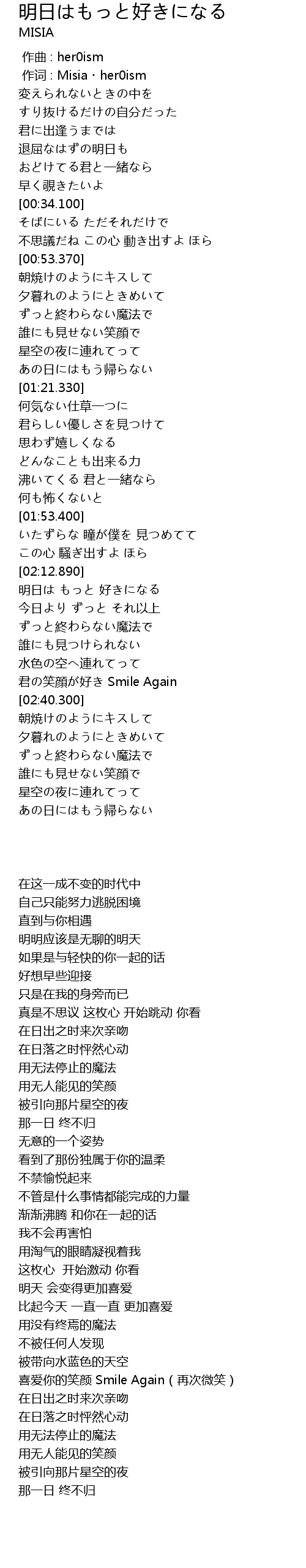 | [02:34.830] | 君の笑顔が好き Smile Again |