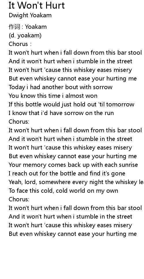| It won't hurt 'cause this whiskey eases misery | |