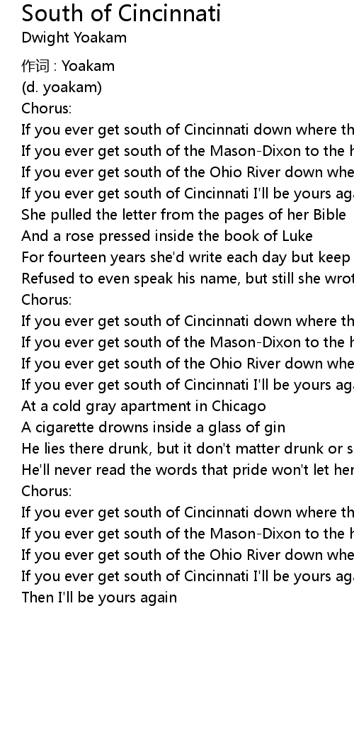 | If you ever get south of Cincinnati I' ll be yours again | |