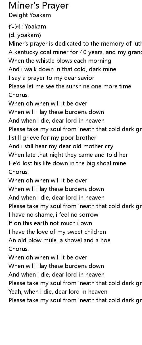 | Miner's prayer is dedicated to the memory of luther tibbs. | |