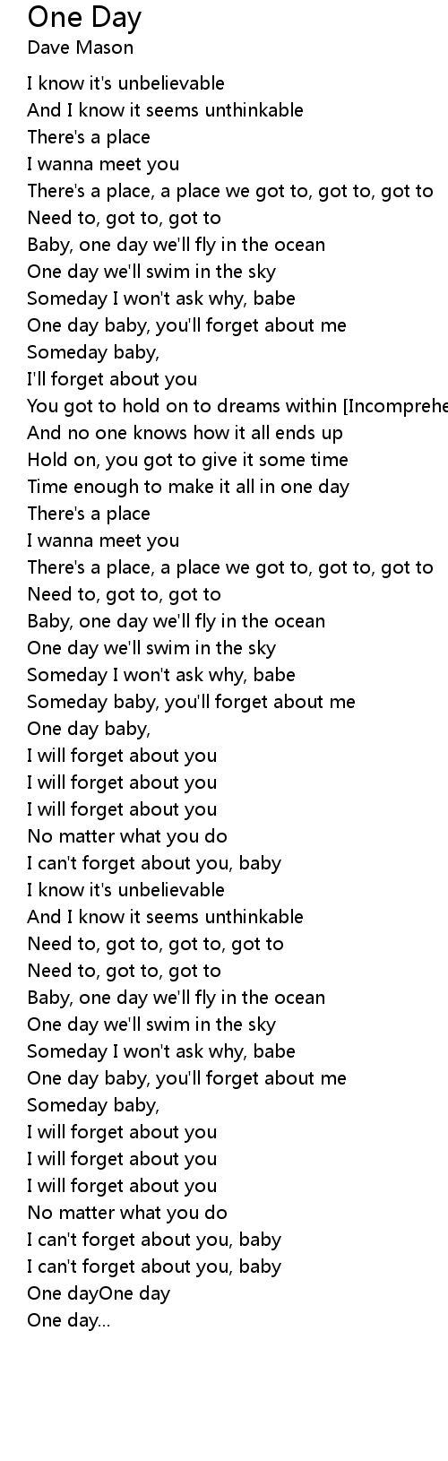 One day baby, you'll forget about me |