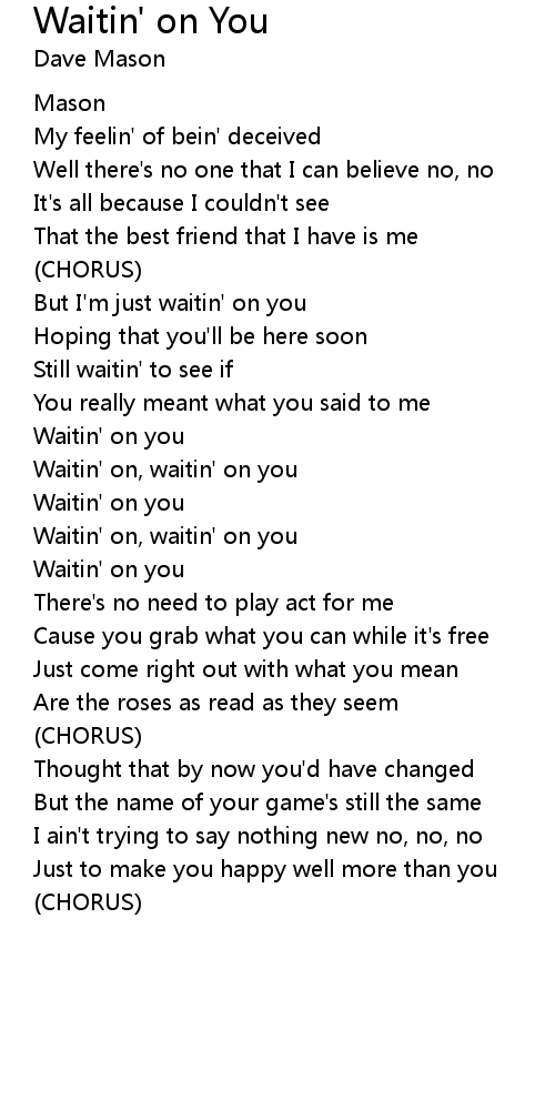 Waitin' on, waitin' on you |