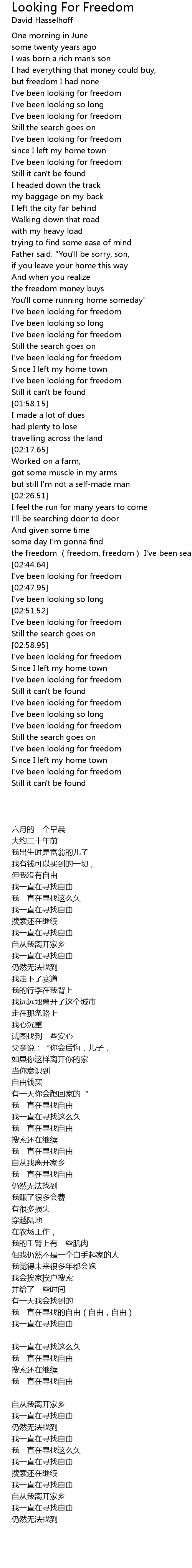 | [02:38.83] | the freedom freedom, freedom I' ve been searching for |