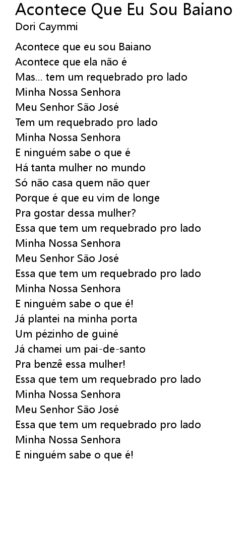| Song | Acontece Que Eu Sou Baiano |