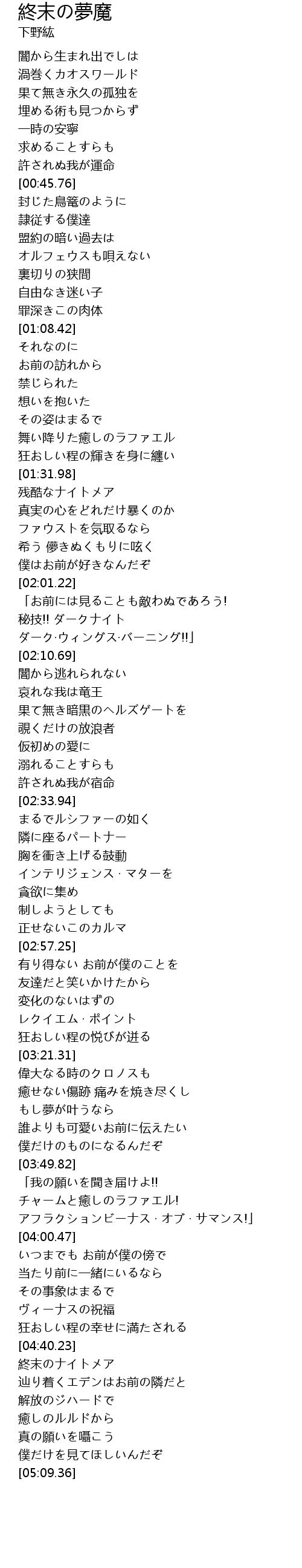 | [03:54.89] | アフラクションビーナス · オブ · サマンス!」 |