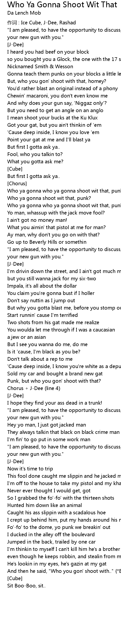 | 作词 : Ice Cube, J-Dee, Rashad | |
