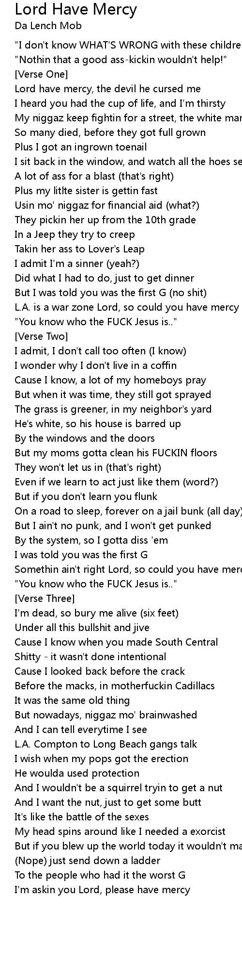 I'm askin you Lord, please have mercy