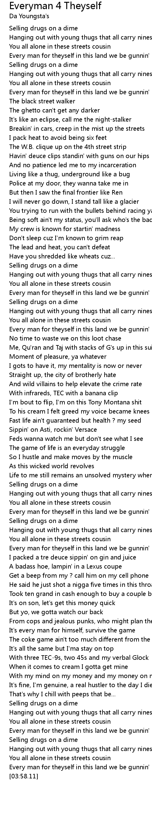 Every man for theyself in this land we be gunnin' |