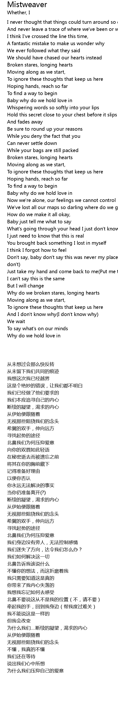 Why do we broken stares, longing hearts |