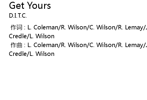 | [00:00.000] | 作曲 : L. Coleman/R. Wilson/C. Wilson/R. Lemay/J. Kirkland/O. Credle/L. Wilson |