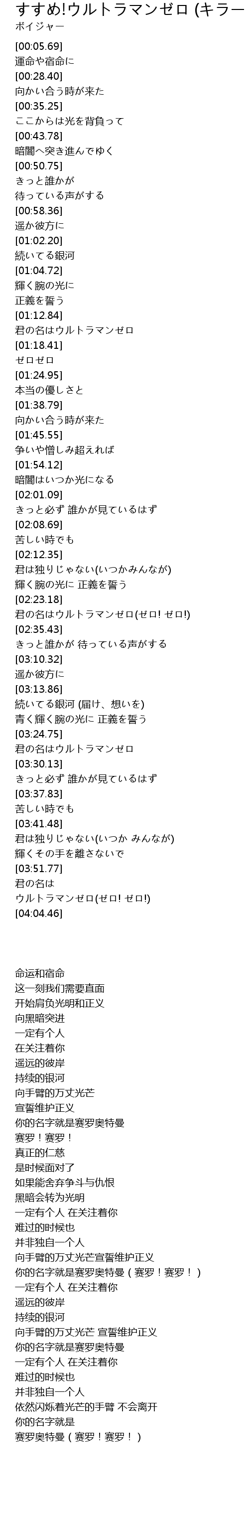 | [03:55.10] | ウルトラマンゼロ(ゼロ! ゼロ!) |