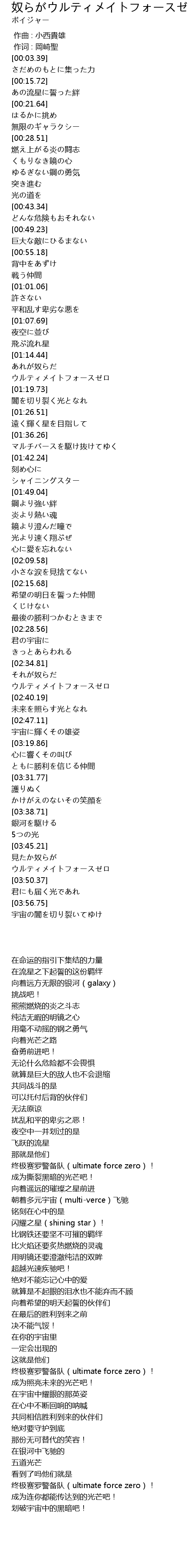 | [01:16.88] | ウルティメイトフォースゼロ |