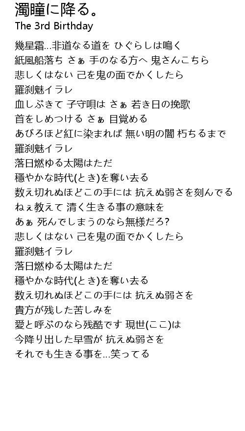 | [00:55.520] | 血しぶきて 子守唄は さぁ 若き日の挽歌 |