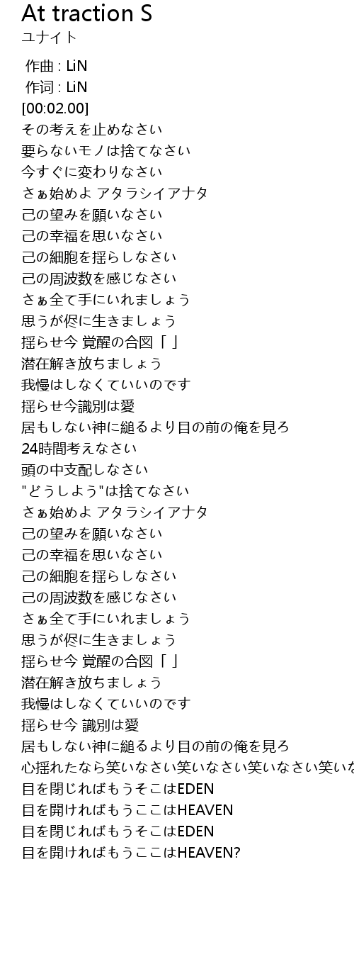 | [03:19.77] | 目を閉じればもうそこはEDEN |