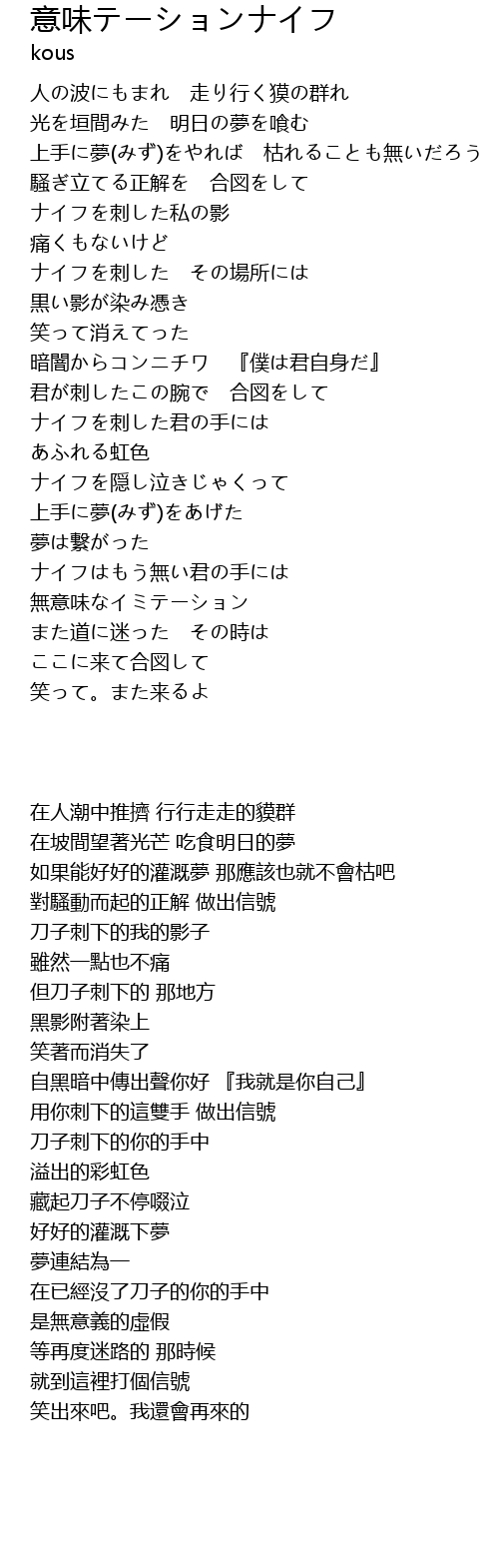 | Song | 意味テーションナイフ |