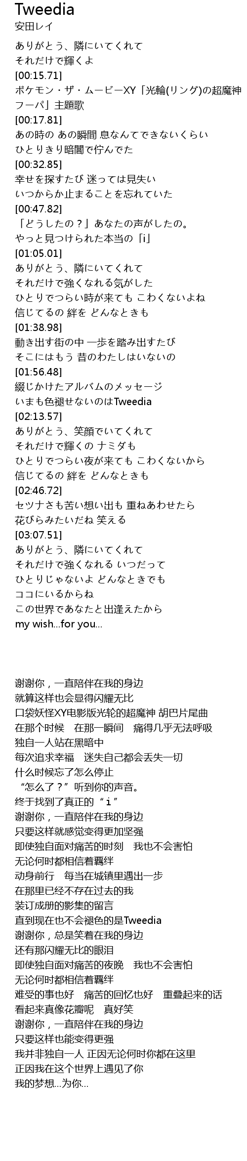 | [00:16.41] | ポケモン・ザ・ムービーXY「光輪(リング)の超魔神 フーパ」主題歌 |