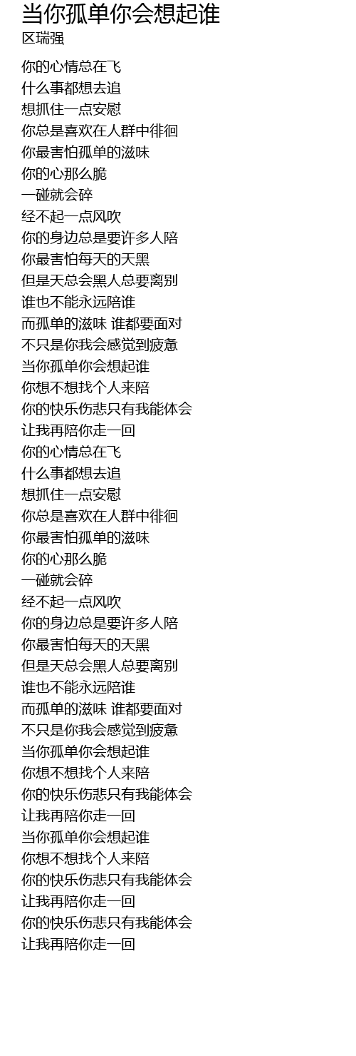 | [03:39.500] | dāng nǐ gū dān nǐ huì xiǎng qǐ shuí |