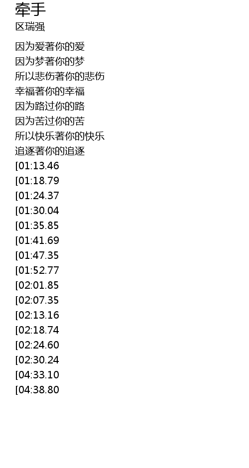 | [03:59.04][02:01.85] | 也许牵了手的手 |
