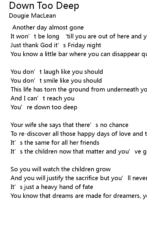 | You' re down too deep | |