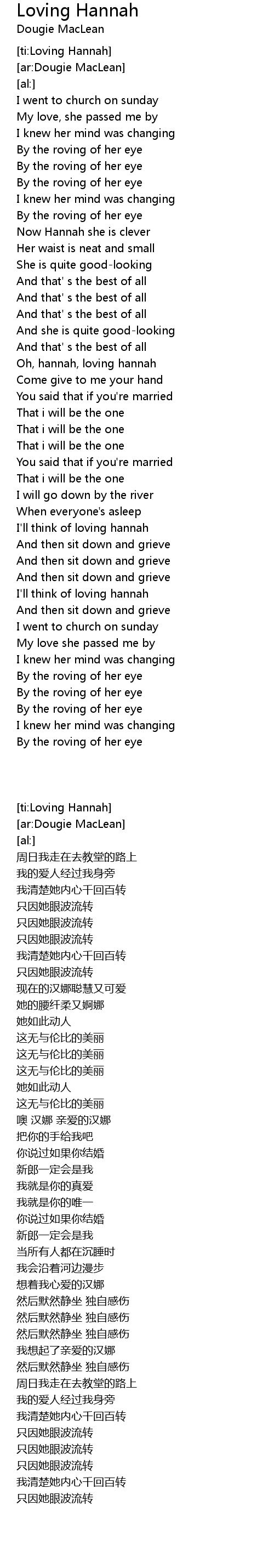 [ti:Loving Hannah] |