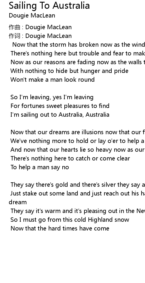 | I'm sailing out to Australia, Australia | |